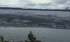 Ice breaking up on Yellowstone Lake