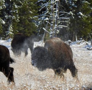 I’m dreaming of how, when we first arrive in early May, we get to watch the new bison calves chasing around . . .