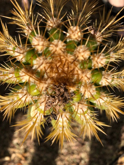 what is the purpose of all these spines anyway? Well, without being able to actually ask the cactus, they are mostly for protection. Protection from being eaten by herbivores, yes. But protection from the elements too. Spines are actually modified leaves on a cactus. The shade they provide reduces the heat load and its attendant water loss.